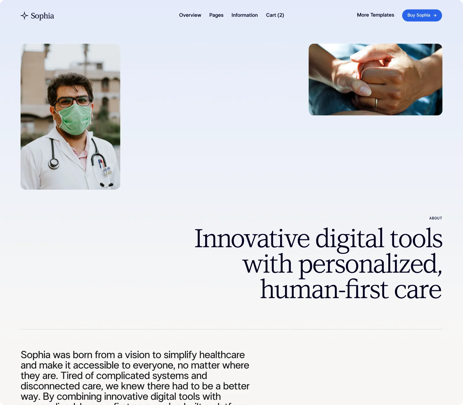 Build a patient-first experience with Sophia’s sleek, customizable templates—perfect for healthcare, wellness, and medical professionals.